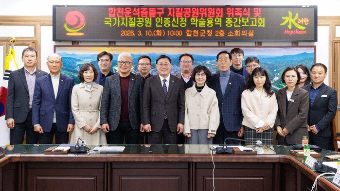 한편, 합천군은 합천운석충돌구를 비롯해 가야천 회장암과 암맥군, 홍류동계곡, 배티셰일동굴, 오도산 전망대와 주춤바위, 가호리 낙동층 부정합 등 12개 지질명소에 대한 기초학술조사를 마무리했고 최종 점검을 마친 뒤, 오는 3월말 국가지질공원 후보지 신청서를 경남도를 거쳐 기후에너지환경부에 제출할 예정이다. 이후 서면평가와 지질공원위원회 심의를 거쳐 후보지 선정여부가 결정될 전망이다.