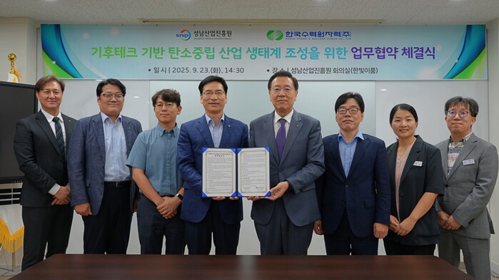 [성남=오왕석 기자] 성남산업진흥원(원장 이의준)과 한국수력원자력이 기후위기 대응 이라는 국가적 과제 속에서 탄소중립 사회 실현을 위한 기후테크 산업 생태계 조성에 협력하기로 했다.