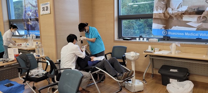 성산장기려기념사업회 블루크로스 의료봉사단은 지난 10일 경기 광주시 퇴촌면에서 의료나눔 봉사활동을 펼쳐 내과, 외과, 치과, 안과 등 120여명의 주민들에게 기초 검진과 진료, 투약, 초음파 검사 등 의료 서비스를 제공했다. 사진은 이날 의료나눔 치과 검진이 진행되고 있는 모습. (사진제공=광주시청)