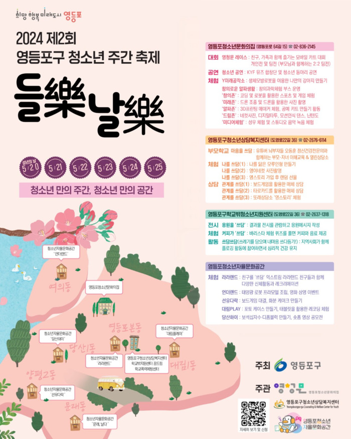 [시민일보 = 여영준 기자] 서울 영등포구(구청장 최호권)는 청소년의 달을 맞아 20~25일 청소년주간 축제 '들樂날樂'을 개최한다고 밝혔다.