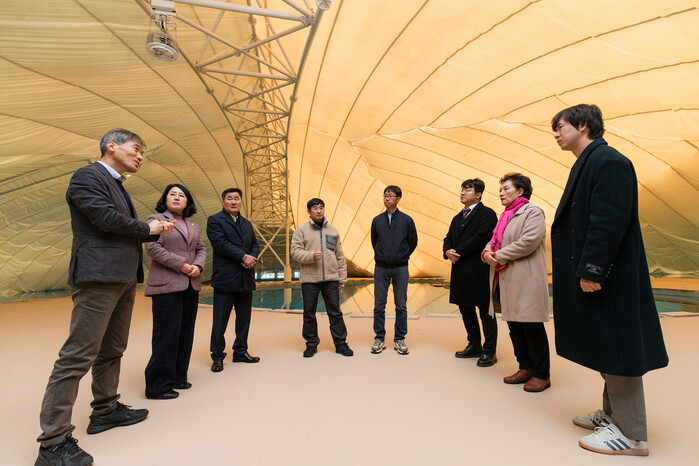 문화복지위원회 위원들은 이날 사동 생존누리 수영장 현장을 방문해 지난 11월 27일 적설에 의해 발생한 에어돔 파손 상황을 파악했다.