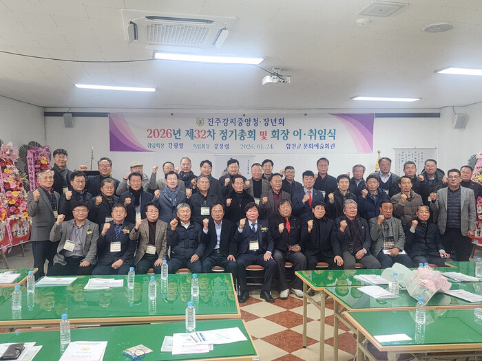 [합천=이영수 기자] 진주강씨 중앙청,장년회 '2026년 제32차 정기총회 및 회장 이,취임식이 지난 24일 합천문화예술회관에서 강광열 회장의 취임을 필두로 성대하게 개최되었다.
