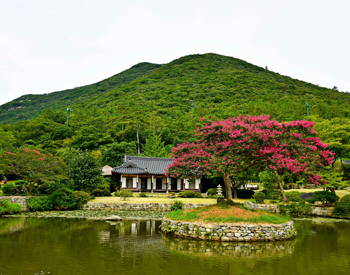 연못과 정원이 어우러진 진도의 대표 명승지로, 연못 인공섬에 있는 약 95년 된 배롱나무는 여름 내내 꽃을 피우고 사계절 아름다운 자태를 유지하며 운림산방의 자연풍경을 완성하고 있다.