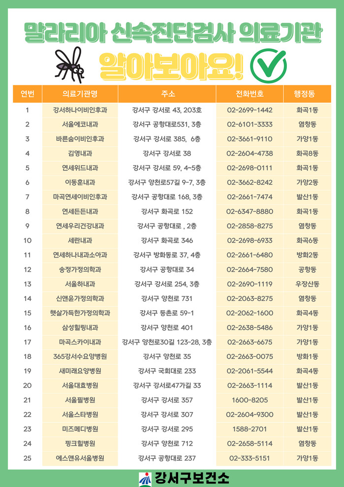[시민일보 = 이대우 기자] 서울 강서구(구청장 진교훈)가 여름철 말라리아 환자가 증가함에 따라 말라리아 예방 수칙의 준수를 당부하고 나섰다.