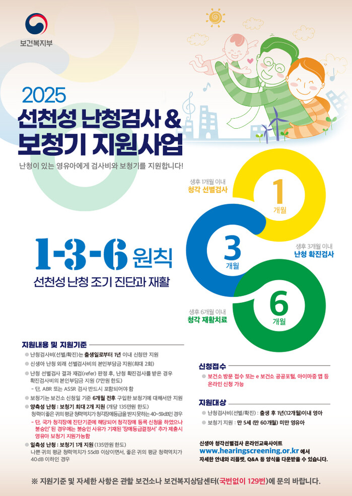 또 난청으로 진단받았으나 청각장애 등급을 받지 못한 만 5세 미만 영유아에게도 개당 135만원, 2개까지 보청기 구입 비용을 지원한다.