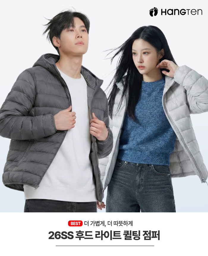 더불어 ‘행텐틴즈(HANGTEN TEENS)’ 주니어 라인에서도 동일한 후드 라이트 퀼팅 점퍼를 선보여, 가족 단위 시밀러룩으로 활용하기에도 좋다.