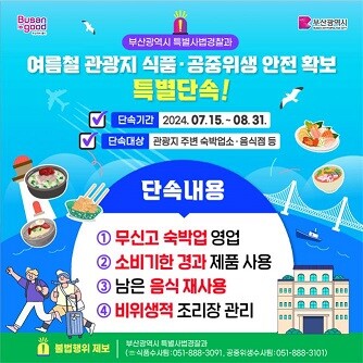 여름 휴가철 부산을 방문한 국내외 관광객들이 부산에 대한 좋은 이미지를 갖고 다시 방문할 수 있도록, 이들에게 안전한 식품·공중위생 환경을 제공하기 위해 기획