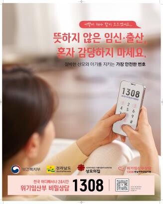 도는 올해 4월부터 위기임산부 지역상담기관으로 목포 ‘성모의 집’을 지정하고 24시간 상담(1308·카카오채널 동시 운영)체제를 구축했다.