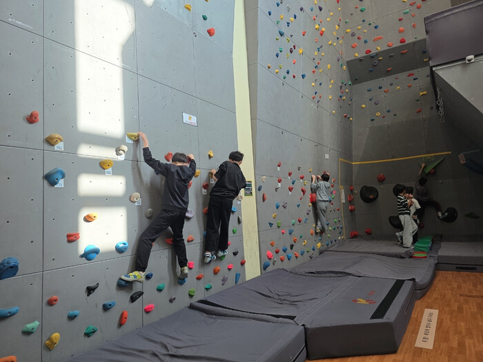 | ▲ 속초 졸업여행 클라이밍 프로그램에 참여한 청소년들의 모습. (사진=오산시청 제공) |