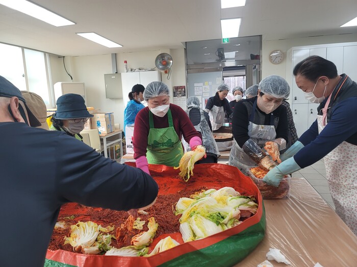 사단법인 경기 구리시자원봉사센터는 최근 일주간에 걸쳐 취약계층의 따뜻한 겨울나기를 위한 ‘김장나눔’ 봉사활동을 전개해 취약계층 370여가구에 4000kg의 김장김치를 전달했다. 사진은 봉사자들이 김장을 하고 있는 모습. (사진=구리시청 제공)