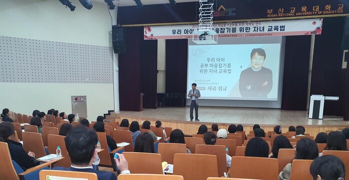 사공정규 교수는 자녀 교육에 열과 성을 다해주시는 노고에 깊은 존경과 감사함을 표하고, '우리 아이 공부 마음잡기를 위한 자녀 교육법'이라는 주제 강연에서 청중과 쌍방향으로 자유롭게 질문하고 대화하는 형식으로 120분간 진행했다.