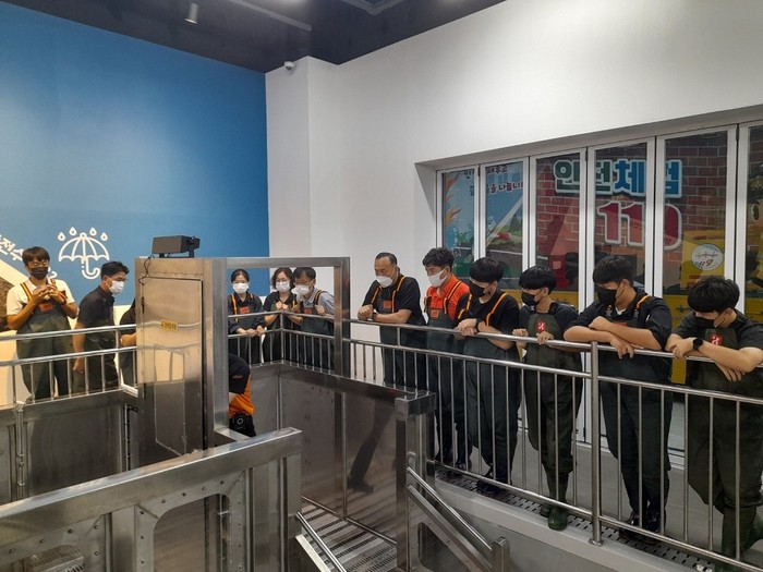 이날 교육에서 직원들은 여름철 집중호우에 따른 침수피해에 대비해 침수공간 탈출부터 자연 재난 대책 기간 종료 후 심폐소생술 교육에 이르기까지 전반적인 자연 재난 대책 이론을 배우고 실습했다.