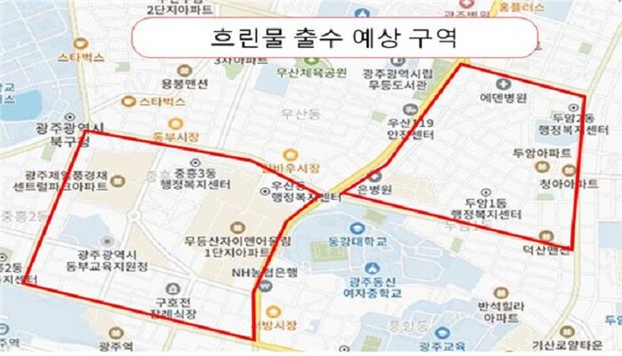 [광주=정찬남 기자] 광주광역시상수도사업본부는 오는 12일 밤 10시부터 13일 오전 7시까지 북구 우산동, 두암동(1동, 2동), 중흥동(2동, 3동) 일대 수도관을 세척한다.