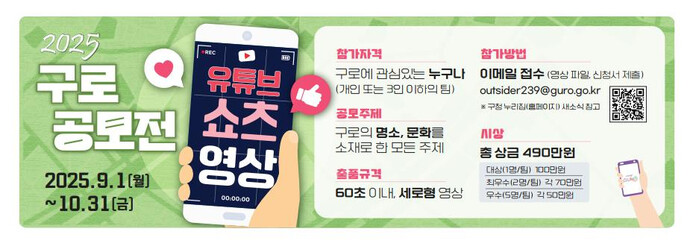 | ▲ 2025 유튜브 쇼츠 영상 공모전 홍보 안내문. (사진=구로구청 제공) |