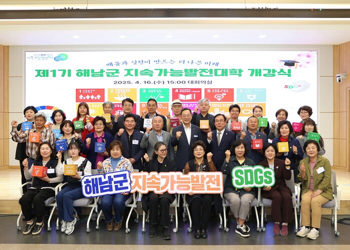 올해 처음 개설되는 ‘해남군 지속가능발전대학’은 지속가능발전교육 프로그램을 통해 지역활동가를 양성하고, 수료자 간 네트워크를 형성해 지속가능발전 정책을 지역사회에 확산하는 것을 목표로 운영된다.