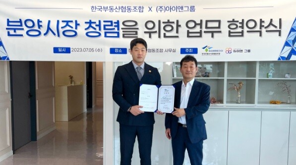 또한 임상훈 (주)아이앤그룹 대표는 “이번 업무협약을 통해 양 기관의 상호 발전은 물론 분양 거래 시장의 안정성 강화에 기여할 수 있을 것”이라며 “앞으로 적극적인 협력체계를 구축해 분양 거래질서 확립과 계약자 보호에 앞장서겠다”라고 밝혔다.