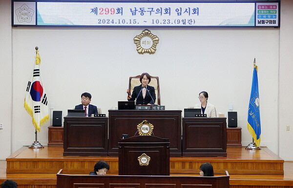 [인천=김형만 기자] 남동구의회는 10월 15일 제299회 임시회 제1차 본회의를 시작으로 23일까지 9일간의 의사일정을 시작했다.