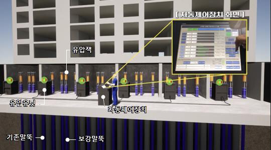 새롭게 개발한 공법은 자동제어장치를 활용해 말뚝에 가해지는 하중을 고르게 분산시켜 전체 보강 말뚝을 동시에 관리할 수 있다.