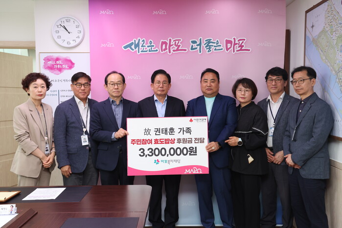 [시민일보 = 변은선 기자] 서울 마포구(구청장 박강수)는 최근 공덕동 주민 권경환씨가 아들을 대신해 효도밥상 후원금을 기탁했다고 밝혔다.