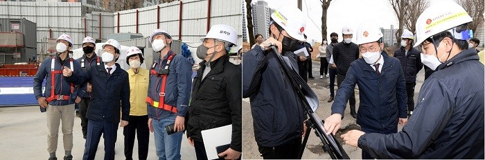 | ▲ 문영훈 광주광역시 행정부시장이 23일 서구 농성동 빌리브 트레비체 공사 현장(좌측) 및 광산구 신가동 '주택개발정비사업' 현장을 방문해 공사 상황을 점검하고 있다. / 사진=광주광역시 제공 |