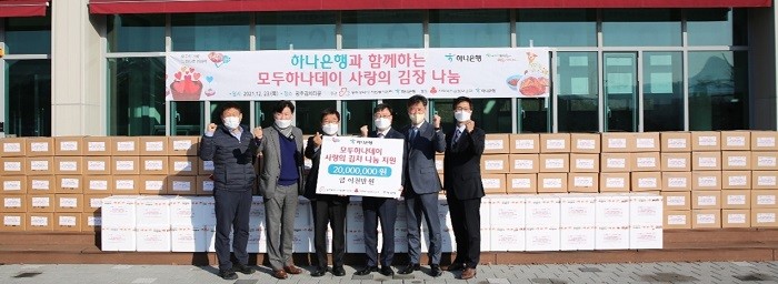 이어 23일에는 하나은행이 코로나19 장기화로 어려움을 겪고 있는 이웃을 지원하기 위해 2000만 원 상당의 김장김치 3.2t을 광주광역시자원봉사센터에 기부했다.