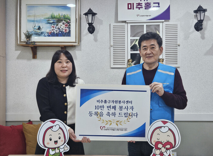 유중형 센터장은 “10만 번째 자원봉사자 탄생은 미추홀구의 나눔이 시민들의 삶 속에 깊이 스며들고 있다는 뜻깊은 이정표”라며, “앞으로도 더 많은 주민이 함께 참여해 따뜻한 지역사회를 만들어가길 기대한다.”라고 말했다.