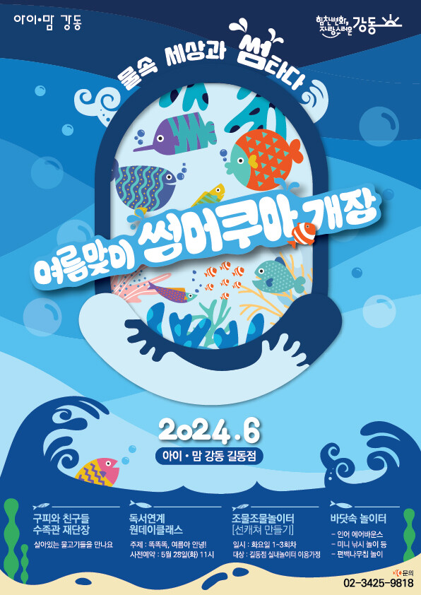 [시민일보 = 이대우 기자] 서울 강동구(구청장 이수희)가 ‘아이맘 강동’ 길동점(양재대로 1486, 정남빌딩 6층)의 실내 놀이터를 여름 테마 ‘바닷 속 왕국’으로 꾸민 ‘썸머쿠아’를 이달 한달간 개장한다.