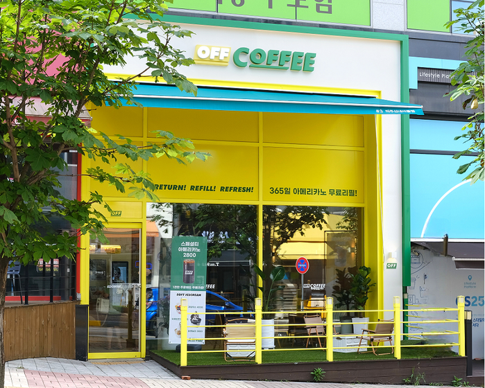 일반적으로 리필은 당일에 한하는데 반해 오프커피는 내일도 모레도 자사 브랜드 테이크아웃컵이나 쿠폰을 가져오면 스페셜티 아메리카노를 무료로 리필해주는 특색이 있어 충성이용고객들이 늘어나는 추세라고 말한다.