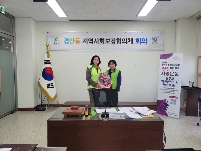 경기 광주시 송정동 지역사회보장협의체는 14일 2024년 제1차 정기회의를 개최했다. 이날 회의에서는 새롭게 위촉된 위원 5명에게 위촉장을 전달했다. 사진은 이날 진행된 이임식에서 기념촬영을 하고 있는 모습. (사진=광주시청 제공)