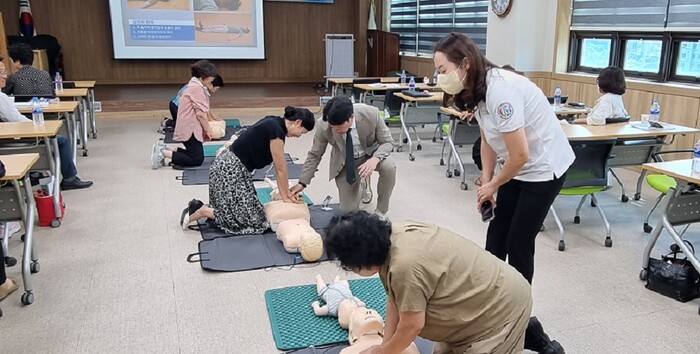 특히 자동심장충격기와 심폐소생술 인형 기기인 ‘QCPR애니’를 활용한 실습 위주의 1대 1 맞춤교육은 큰 호응을 얻었다.