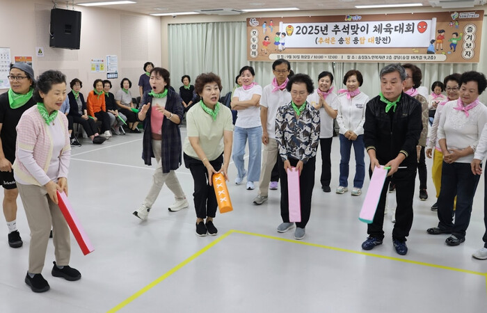 서울 성동구에 위치한 송정동노인복지관, 용답동노인복지관, 송정스마트헬스케어센터 3개 기관이 최근 한자리에 모여 추석을 맞아 '어르신 체육대회'를 함께 개최했다. 사진은 대회에 참여한 노인들이 윷놀이를 하는 모습. (사진=성동구청 제공)