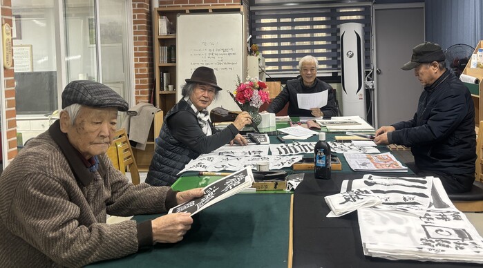 경기 여주시 연양2통 경로당에서는 최근 배움의 열정을 불태우는 회원들을 위해 매주 서예교실을 운영하고 있다. 사진은 연양2통 경로당 서예교실에 참여하고 있는 노인들의 모습. (사진=여주시청 제공)