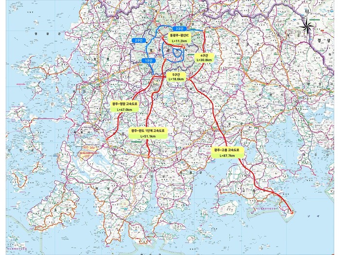 [광주=정찬남 기자] 광주광역시(시장 강기장)는 서남권 중심도시로서 인근 시군 자치단체에 빠르고 편리하게 이동할 수 있는 사통팔달의 고속도로망 구축사업에 박차를 가하고 있다.