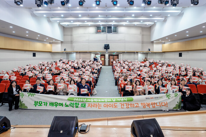 경기 오산시가 19일 시청 대회의실에서 ‘제5회 2025년 아동학대 예방의 날 기념행사’를 시민들의 큰 호응 속에 성공적으로 개최했다. 사진은 기념식에서 이권재 시장이 참석자들과 기념 촬영을 하는 모습. (사진=오산시청 제공)