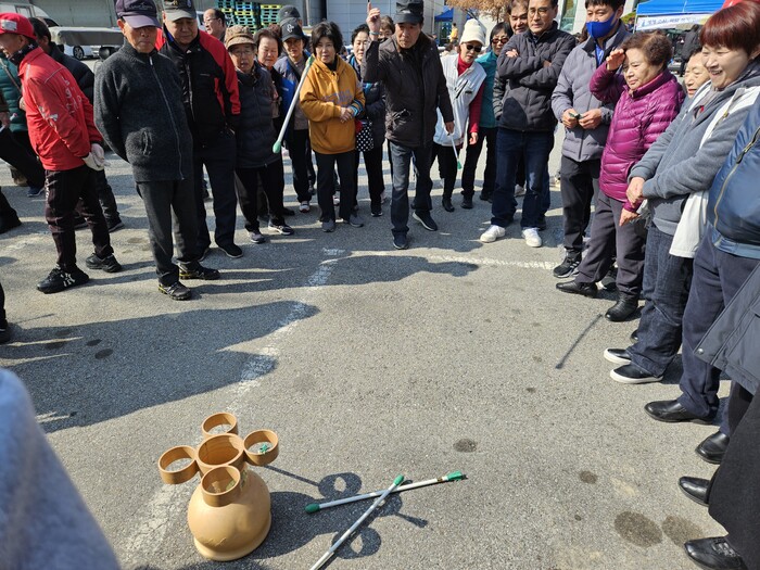경기 동두천시 상패동 체육회가 주관하고 사회단체협의회가 후원하는 ‘2024년 상패동 정월대보름 민속축제’가 최근 성황리에 막을 내렸다. 사진은 이날 투호놀이가 진행되고 있는 모습. (사진=동두천시청 제공)
