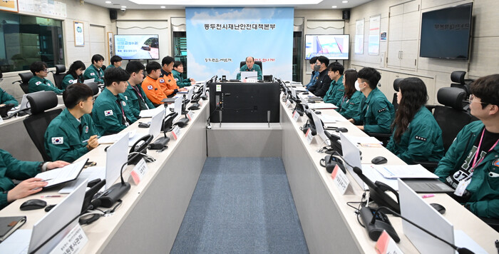경기 동두천시 재난안전대책본부가 최근 여름철 자연재난에 대비해 지역내 경찰서, 소방서, 한국전력 동두천지사 등 관계기관과 대책 회의를 열고 이에 대비한 도상 훈련을 진행했다. 사진은 회의가 진행 중인 모습. (사진=동두천시청 제공)