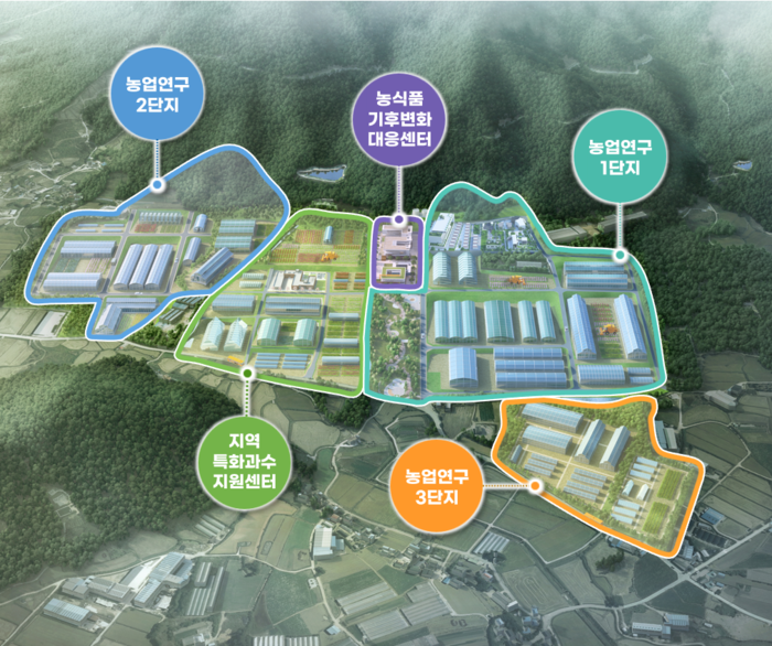 현재 조성 중인 1단지는 스마트 농업 및 미래농업 기술 현장 실증을 위한 테스트베드단지 활용에 중점을 뒀다면 2단지는 연구, 유통, 생산 기능을 갖춘 농업 관련 기업을 유치해 지역경제 활성화와 농업 산업화를 이끄는 핵심거점으로 활용하게 된다.