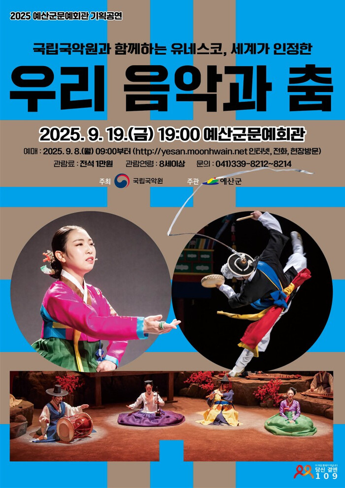 [예산=김의석 기자] 충남 예산군문예회관은 오는 19일 오후 7시 ‘유네스코, 세계가 인정한 우리 음악과 춤’을 선보인다.