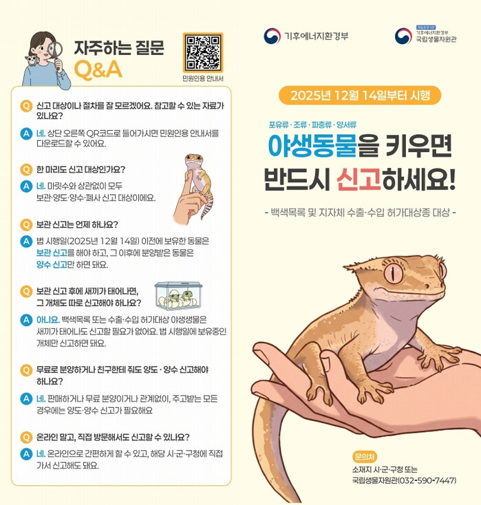 신고는 기후환경부가 운영하는 ‘야생동물종합관리시스템'을 통해 온라인으로 가능하다.