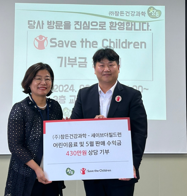 참든건강과학은 유기농 원재료를 사용해 제품을 생산하는 기업으로 지난 5월 5일 진행한 세이브더칠드런 국제어린이마라톤에 어린이음료 '아이야미 유기농 보리차' 3,200포를 후원한 바 있다. 이어서 5월 가정의 달 판매수익금의 일부를 더하여 총 430만원의 기부하였다.