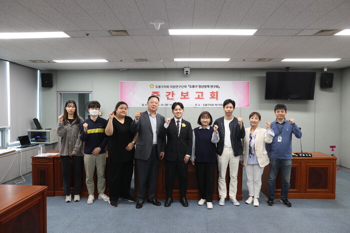 [시민일보 = 여영준 기자] 서울 도봉구의회(의장 강신만)가 최근 구의회 3층 제1위원회실에서 ‘도봉구 청년정책 연구회’ 의원들과 도봉구청 청년지원팀장 등 관련 공무원 2명, 한국응용통계연구원 연구위원 2명이 참석한 가운데 중간보고회를 개최했다.