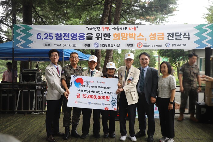 지난 19일 희망사와 통일미래연대는 참전용사들에게 1500만원의 성금과 1500만원 상당의 물품을 담은 사랑의 희망박스 전달식을 가졌다.