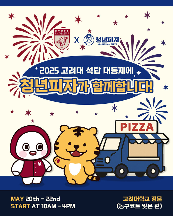 청년피자 관계자는 “브랜드가 지닌 뜨거운 열정과 고려대학교 학생들의 에너지가 만나 특별한 시너지를 낼 것으로 기대한다”며 “이번 행사를 통해 청년피자가 젊은 세대의 일상 속 즐거운 추억으로 자리 잡기를 바란다”고 전했다.