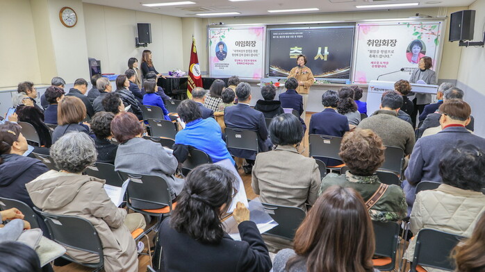 (사)경기도여성단체협의회 과천시지회가 최근 회장 이·취임식을 개최했다. 이번 행사에는 신계용 경기 과천시장과 이금자 (사)경기도여성단체협의회 회장, 지역 내빈, 여성단체협의회 소속 6개 단체장 및 회원들이 참석했다. 사진은 신 시장이 인사말을 하는 모습. (사진=과천시청 제공)