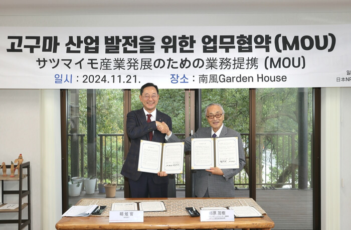 고우하라 이사장은 “해남고구마는 지난 10여년 동안 눈부시게 성장해 많은 발전을 이룬 것으로 알고 있다”며 “아직 디저트와 같은 가공분야, 특히 냉동 가공이 이제 막 첫 발을 뗀 만큼 이번 협약을 통해 기회가 된다면 기계설비 등 시스템과 프로그램을 조언해 해남고구마 가공산업 발전을 돕고 싶다”고 화답했다.