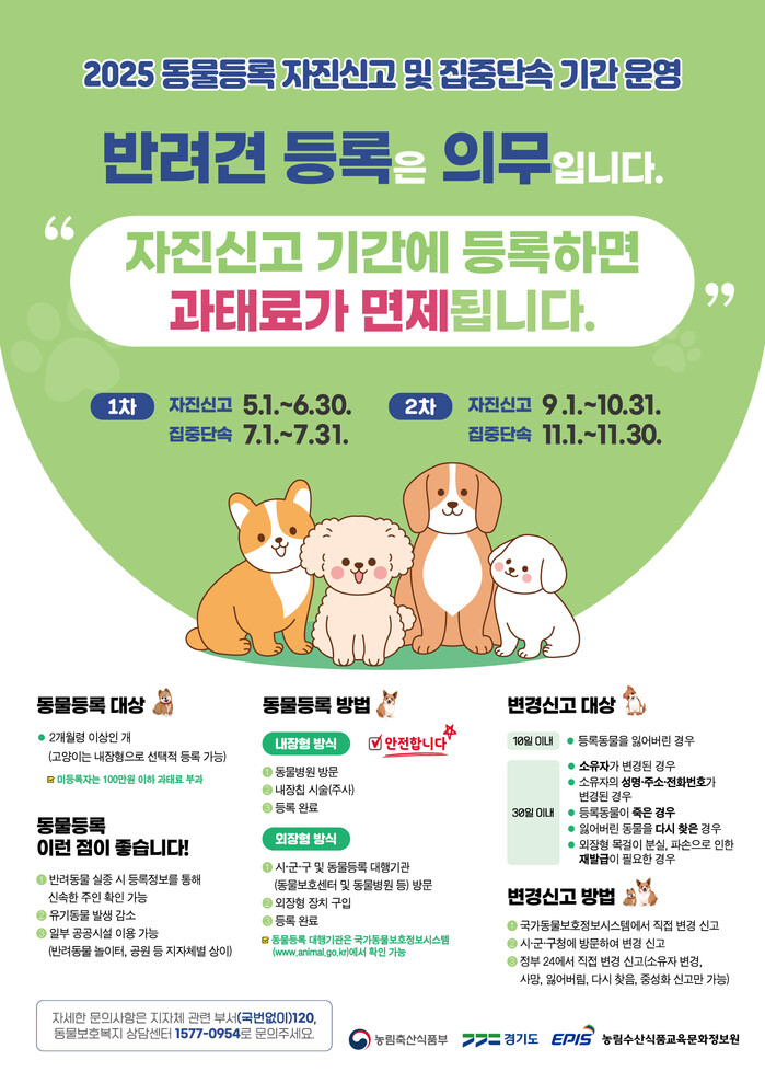 군 관계자는 “반려동물 등록은 법적 의무일 뿐만 아니라 반려동물을 가족으로 받아들이는 첫걸음”이라며 “많은 반려인들이 이번 자진신고 기간을 활용해 동물등록에 적극 참여해 달라”고 당부했다.