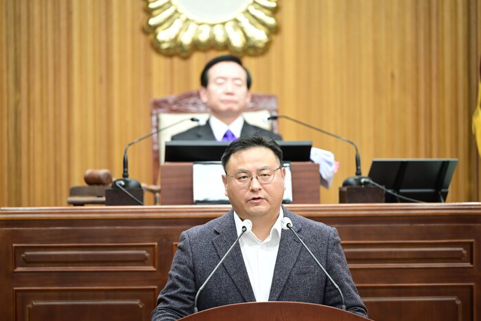 | ▲ 목포시의회 최원석 의원이 5분 자유발언을 하고 있다.(출처=목포시의회) |
