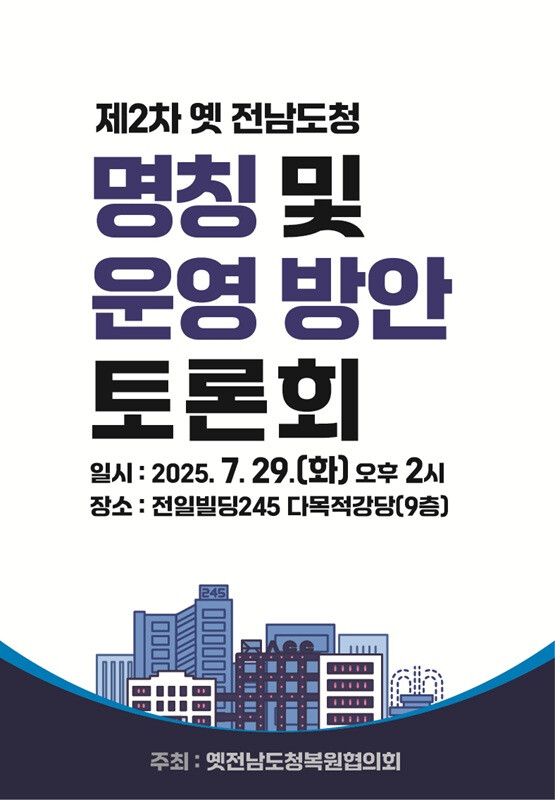 이번 토론회는 광주광역시, 문화체육관광부 옛전남도청복원추진단, 옛전남도청복원범시도민대책위원회로 구성된 옛전남도청복원협의회가 공동 주최하며, 5·18민주화운동의 최후 항쟁지인 옛 전남도청의 의미를 되새기고 복원 건물의 공식 명칭과 향후 운영 방향을 시민과 함께 고민하는 자리로 마련됐다.