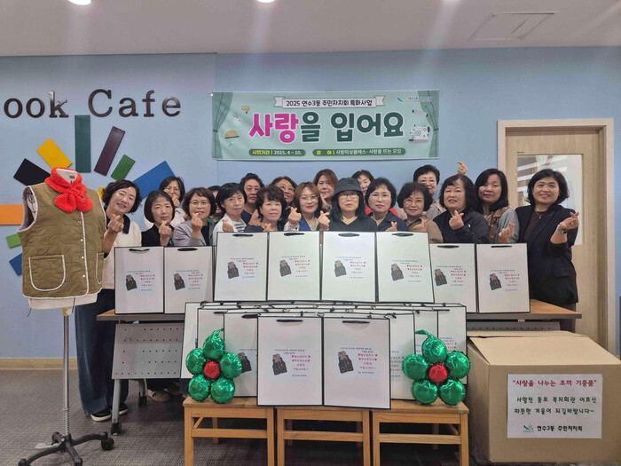 [인천=문찬식 기자] 인천 연수구 연수3동 주민자치회(회장 민은덕)는 지난 14일 ‘사랑을 입어요’ 사업을 통해 손수 만든 털누빔조끼와 털목도리 세트를 지역 내 취약계층에 전달했다.