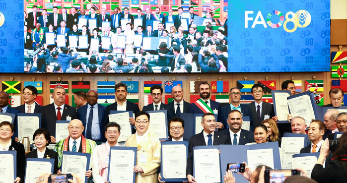 인증서 수여식은 FAO 창립 80주년을 기념해 2023년부터 올해까지 등재된 세계중요농업유산을 대상으로 열렸다.